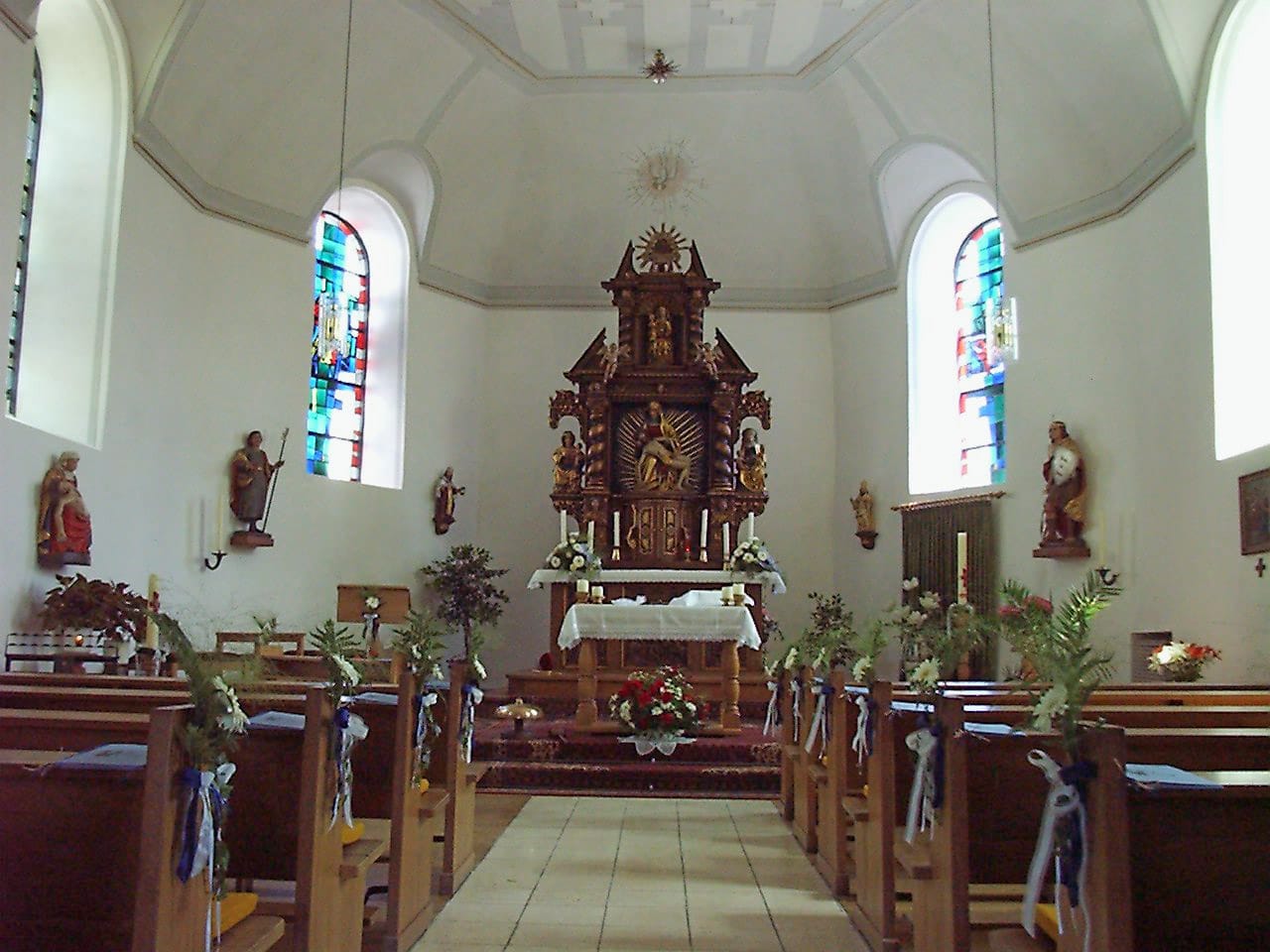 – ein Hauptaltar, in dem die Heiligste Dreifaltigkeit zum Ausdruck kommt und zwei Seitenaltäre,